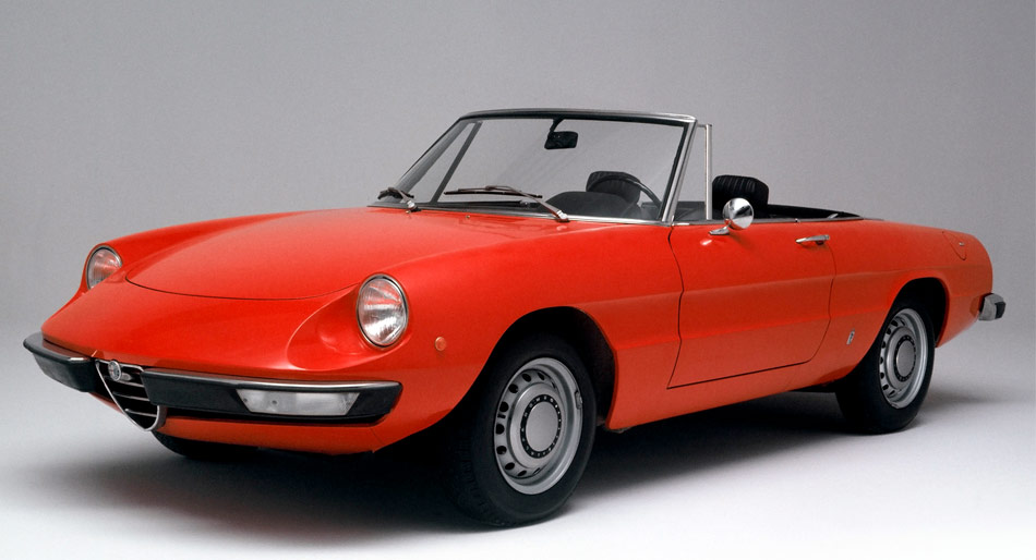 Alfa Romeo Spider (Duetto) – Le prestazioni non erano il suo forte, ma questa barchetta a due posti è riuscita ad attraversare quarant’anni di storia, dal 1966 al 1994, senza mai cambiare aspetto, se non per qualche dettaglio, diventando un’icona della produzione italiana. Il motore 4 cilindri da 1.600 centimetri cubici e 109 cavalli permetteva al massimo 180 km/h di velocità, ma il suo stile ha saputo conquistare migliaia di appassionati nel mondo. (Credits: Alfa Romeo)