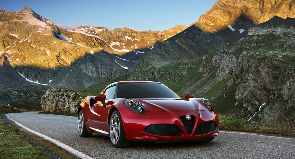 Alfa Romeo 4C – Pluripremiata e molto apprezzata in tutto il mondo, l’ultima coupé a due posti secchi di Alfa Romeo, uscita nel 2013, è tra gli orgogli della produzione nostrana. Ha dalla sua prestazioni da supercar, stile tutto italiano ed eccellenza tecnica. Ha fatto da portabandiera per il ritorno di successo del marchio Alfa Romeo negli Stati Uniti. (Credits: Alfa Romeo)