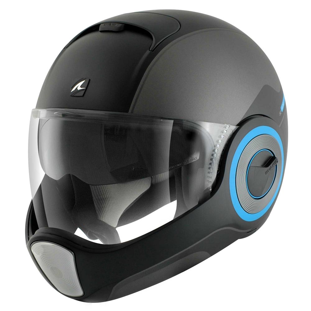 Shark Vantime Si punta al design futuristico per questo casco con mentoniera mobile, studiato nei dettagli estetici per fornire la massima aerodinamicità. Gli interni sono in fibra di bambù naturale e gli esterni in resina termoplastica, per un peso totale di soli 1,390 kg. È in vendita a 213 euro.