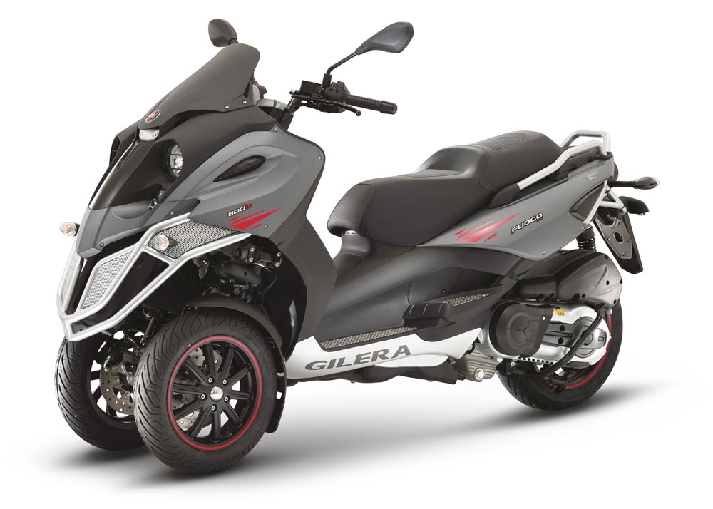 Gilera Fuoco LT Un design decisamente testosteronico è la caratteristica principale del potente Fuoco LT, quasi a voler imitare le cugine motociclette. Sotto la sella lavora un motore monocilindrico da 500 cc, a doppia accensione con distribuzione a 4 valvole a iniezione elettronica, grazie al quale lo scooter può toccare i 150 km/h. Nonostante sia un prodotto italiano, non è ancora prevista la vendita in patria, mentre in Francia e in altri paesi europei è disponibile a prezzi intorno gli 8mila euro.