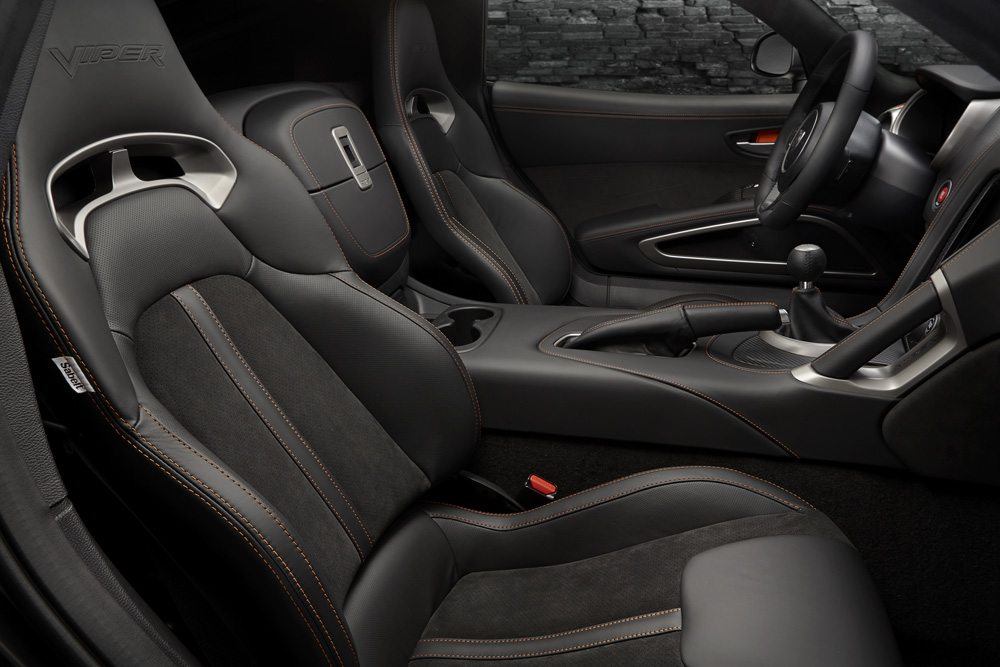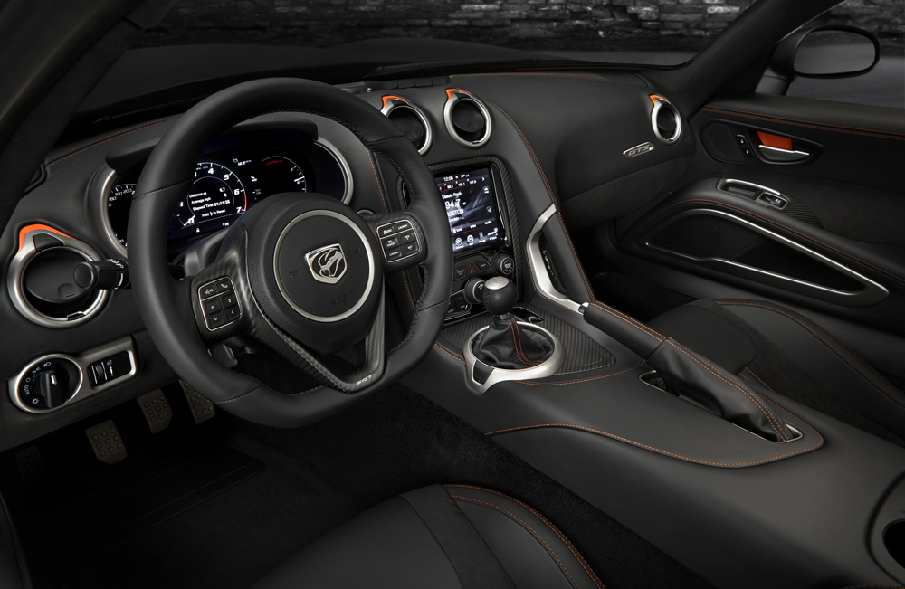 La SRT Viper TA ha invece un carattere molto più sportivo e performante. TA sta per Time Attack, e infatti questa versione è stata ritoccata per ridurre sensibilmente i tempi nelle prove su pista. Gli accorgimenti riguardano soprattutto i materiali, con l’utilizzo della fibra di carbonio per alleggerire il bolide e di alcuni accorgimenti aerodinamici, come le grandi prese d’aria sul cofano. Sono previsti solo 93 modelli e tre colorazioni: TA Orange, Venom Black e Bright White.