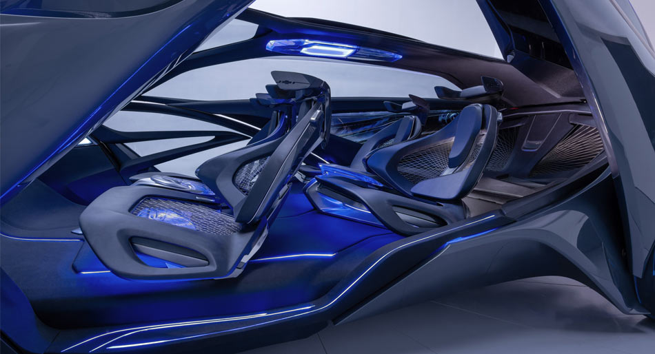 Il suo nome, FNR, è l’acronimo di “Find New Roads”: nuove strade da cercare e percorrere per trovare una nuova concezione di mobilità su quattro ruote. E la sperimentazione che sta intorno a questo concept è davvero di prim’ordine. A partire dai dettagli visibili, come appunto il design innovativo, caratterizzato da linee ed elementi che sembrano arrivare da immaginari fantascientifici. Spiccano in particolare le portiere che si aprono come delle ali di drago, verso l’alto, in modo speculare tra anteriori e posteriori. Ma anche le ruote senza mozzo, tanto simili a quelle delle moto di Tron. E infine l’enorme parabrezza, che ricopre buona parte della superficie del veicolo, fino quasi ad assorbire il cofano.