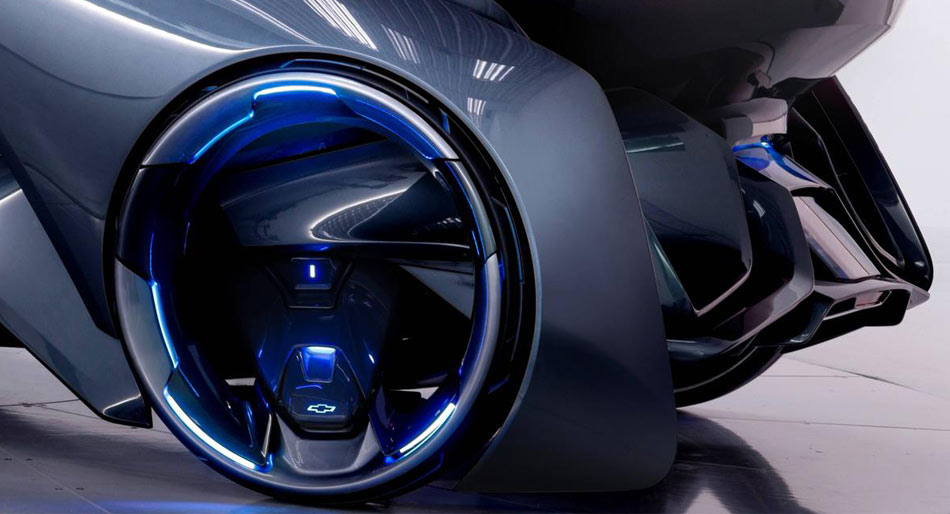Anche la dotazione tecnologica segna la volontà di un cambio di paradigmi nel mondo dell’auto. La Chevrolet FNR è infatti in grado di viaggiare in modo autonomo, con un complesso insieme di sensori che alimentano di dati Chevy Intelligent Assistant, l’intelligenza artificiale che si occupa della navigazione e di tutte le funzioni. È dotata inoltre di un sistema di sicurezza che consente l’accesso ai comandi solo dopo il riconoscimento dell’iride, e il passaggio da guida automatica a manuale avviene attraverso dei comandi gestuali. La propulsione è totalmente elettrica, affidata a quattro motori, uno per ogni ruota, alimentati da batterie che si ricaricano senza bisogno di cavi.