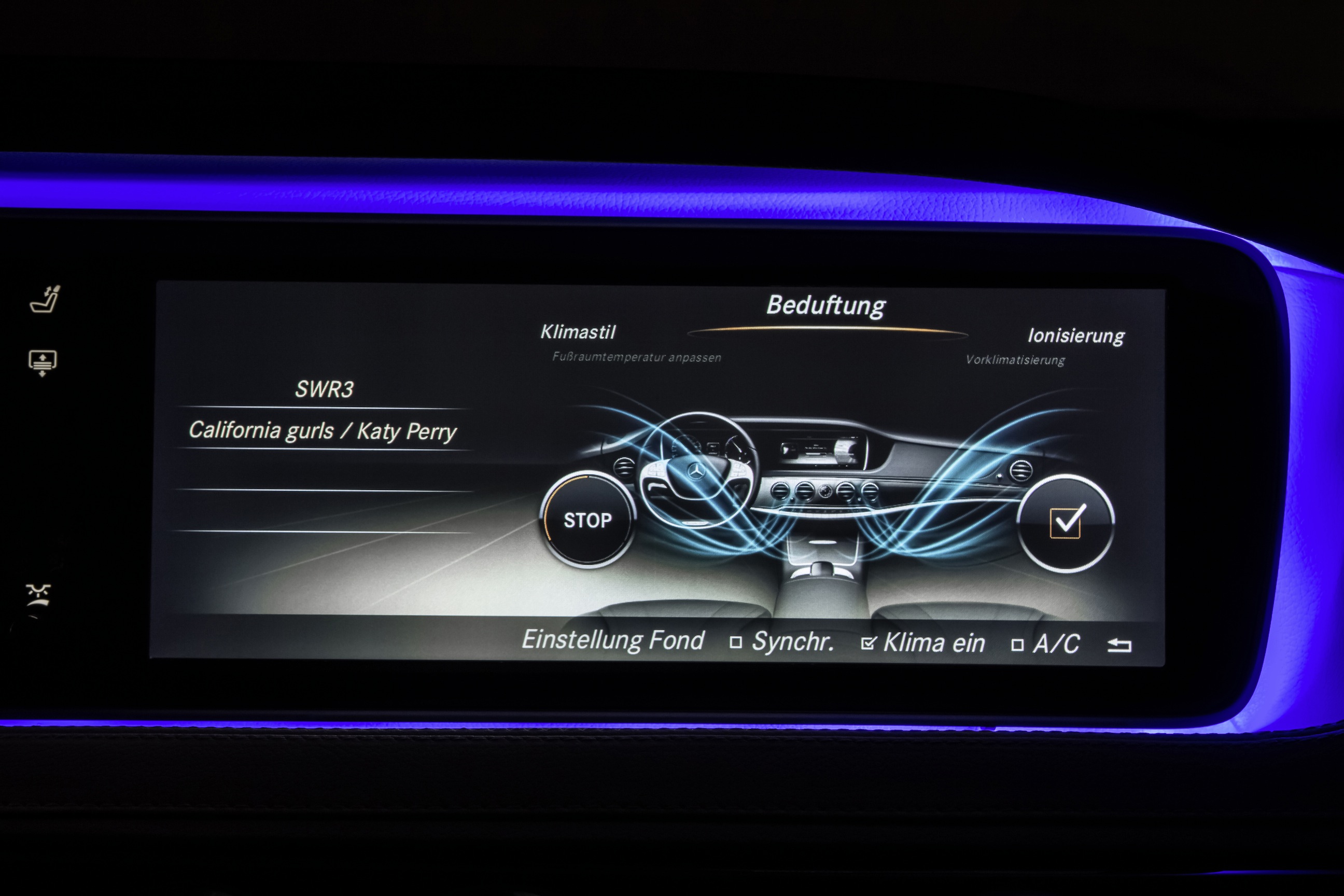 E se Coco Chanel diceva che ‘Un profumo preannuncia il tuo arrivo e prolunga la tua partenza’, Mercedes-Benz disegna gli interni della nuova ammiraglia proprio attorno a questo concetto impalpabile. Così il sistema di climatizzazione evoluto Air-Balance sale a bordo di Classe S e porta una ventata di ionizzazione attiva che permette di personalizzare la fragranza dell’aria nell’abitacolo, senza modificare in modo permanente la profumazione degli interni né provocare il depositarsi di molecole di profumo sulle superfici in tessuto della vettura o sugli abiti. Si tratta di un aroma discreto, che si diffonde dolcemente e svanisce rapidamente, un tocco distintivo che completa un abitacolo elaborato nei minimi dettagli: sedili e climatizzatore, comandi e design, infotainment con due display da 12,3 pollici che raggruppano tutte le informazioni di bordo, comfort e sicurezza.