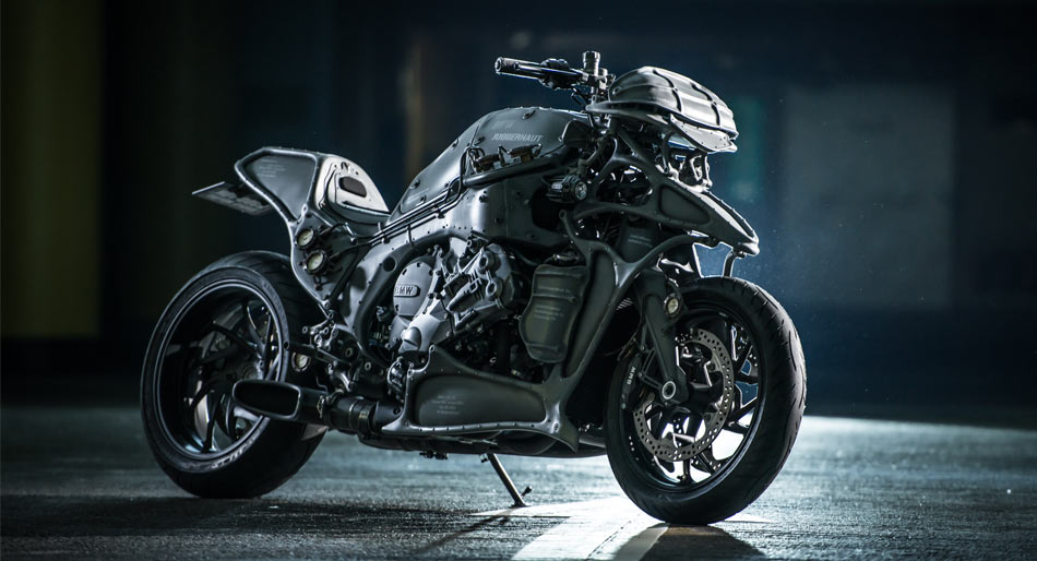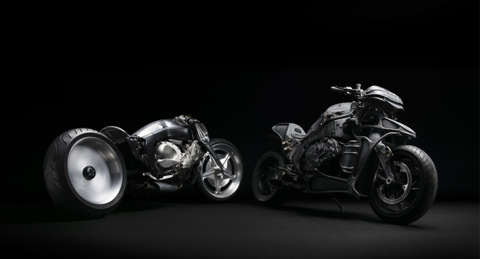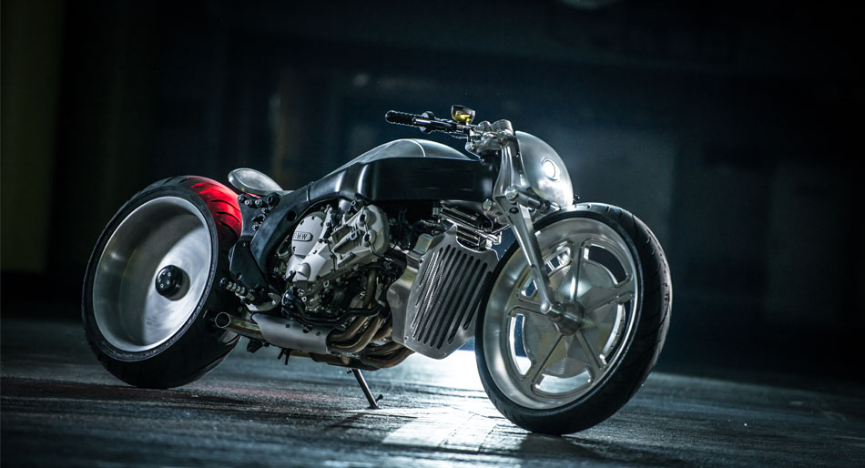 Keniji Kawakita ha invece chiamato la sua creatura Juggernaut, un modo di dire inglese per intendere una forza inarrestabile. Come ha affermato lui stesso, lo stile è un tentativo di sintesi tra il metallo di Mad Max e l’immaginario di Jules Verne. Non c’è traccia di minimalismo in questa possente due ruote che sembra arrivare da un manga steampunk. È ricca di dettagli, con tante linee spezzate e volumi muscolosi. Un’estetica che richiama scenari post apocalittici.