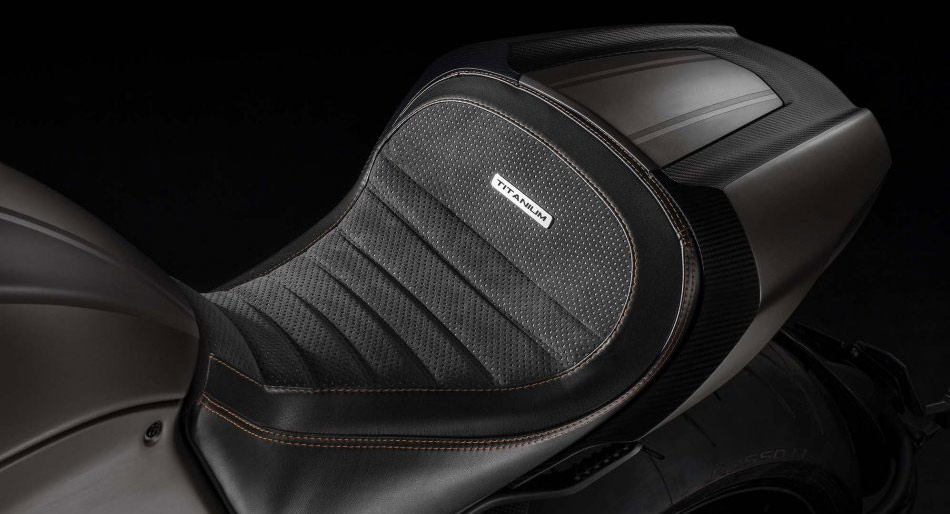 Altri dettagli la rendono speciale, come la sella in Alcantara, cucita a mano, pneumatici maggiorati Pirelli Diablo Rosso II, e cerchi forgiati e lavorati con alluminio a vista, realizzati appositamente per la Titanium. L’impianto luci è ovviamente full Led.