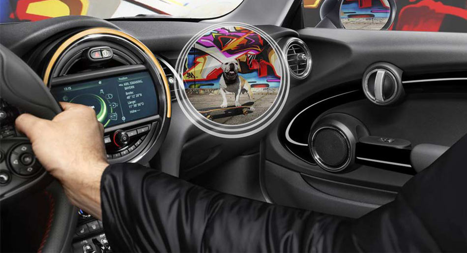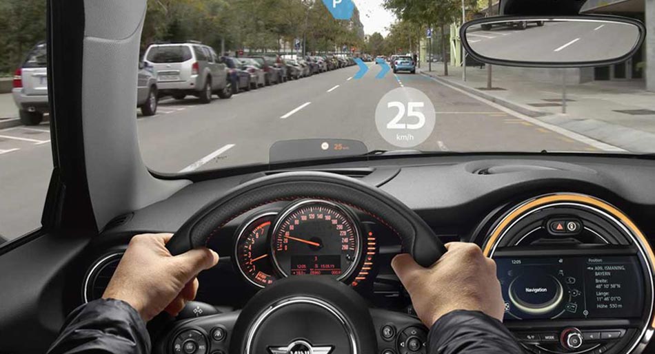 Con i Mini Augmented Vision, chi sta al volante può accedere a numerose funzioni, come per esempio le informazioni su segnaletica e velocità, le indicazioni di navigazione e la visualizzazione della telecamera posteriore in manovra. C’è anche la cosiddetta “visione a raggi X”, un’opzione che permette di vedere l’ambiente attorno al veicolo attraverso la struttura dello stesso, grazie a un sistema di telecamere che forniscono una sorta di effetto trasparente.
