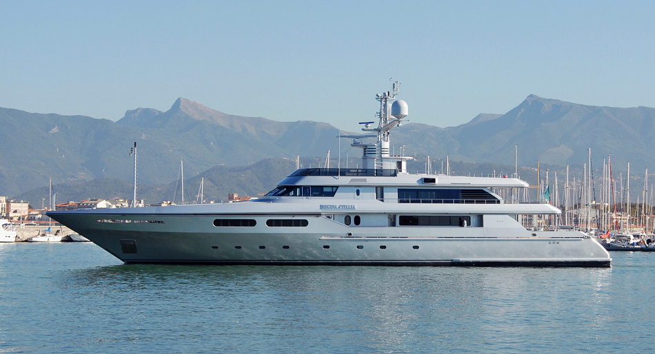 Stefano Gabbana – Regina d'Italia. Splendido mega-yacht da 51 metri e dallo stile impeccabile, realizzato da Codecasa (come lo yacht di Armani), è attrezzato anche di scivoli d'acqua per lo svago degli ospiti. I quali, verosimilmente, saranno spesso modelle e modelli favolosi. (Credits: Codecasa)