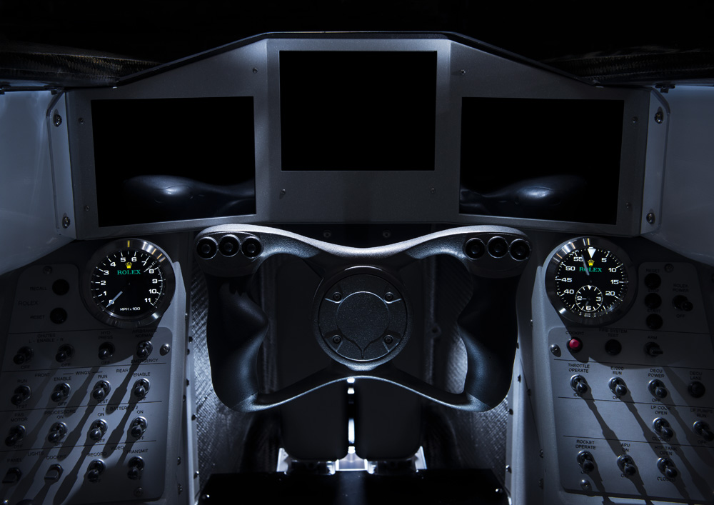 A misurare velocità, tempo e chilometri percorsi, il missile avrà un sistema speciale, un cruscotto progettato in esclusiva da Rolex. La casa svizzera sta lavorando a tachimetro analogico e cronometro, gli strumenti essenziali alla misurazione. Saranno due elementi indipendenti, posti ai lati del cruscotto e separati dal display centrale; sono pensati per una facile lettura dei dati anche a quelle folli velocità, saranno dotati di un backup di sicurezza anti crash e avranno un ruolo essenziale anche nell’assistere alla frenata del bolide.