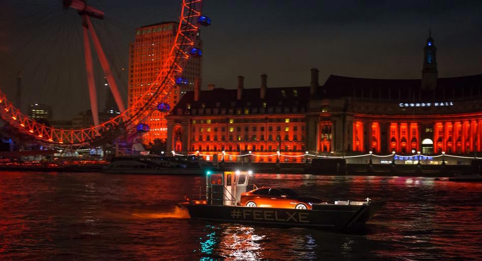 Non solo: migliaia di persone hanno assistito al video mapping proiettato sul County Hall, per l’occasione colorato dello stesso rosso con il quale è stata presentata la nuova XE. Molti i vip presenti, come Stella McCartney, David Gandy, Damian Lewis e José Mourinho. La macchina è arrivata in grande stile: dallo stabilimento di Solihull nelle West Midlands, prelevata con un elicottero, la berlina è approdata lungo il Tamigi, nei pressi del Tower Bridge. Qui è stata caricata a bordo di un velocissimo mezzo da sbarco che l’ha trasportata verso Chelsea Harbour. L’ultimo viaggio, infine, attraverso le strade della capitale fino all’Earls Court Arena scortata da due Jaguar Mark II della polizia.