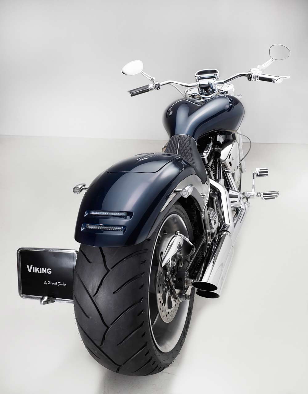 Il tocco di Fisker, che ha nel suo portfolio gioielli come le Aston Martin DB9 e la V8 Vantage, oltre alla BMW Z8 e la Fisker Karma, si mostra sulla Viking in un elegante look che unisce i classici muscoli delle più belle custom a linee morbide e moderne che donano un tocco armonico e unico alla due ruote Lauge Jensen. Un esempio in questo senso è dato da serbatoio, sella e parafango posteriori, che si fondono assieme in un unico segmento continuo.