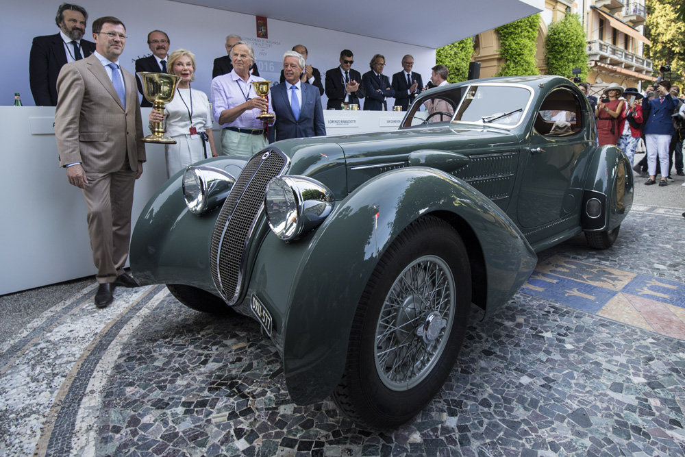 Dopo un’attenta disamina delle vetture in concorso, la giuria ha assegnato quest’anno il Trofeo BMW Group del Best in Show alla fascinosa Maserati A6 GCS, una vettura da corsa del 1954 con motore 6 cilindri in linea da 1988 cc allestita con la perfezione estetica di un’icona di stile. Il design della coupé nacque dalle matite di Aldo Brovarone, che l’aveva realizzato nel 1952 per il marchio Cisitalia.