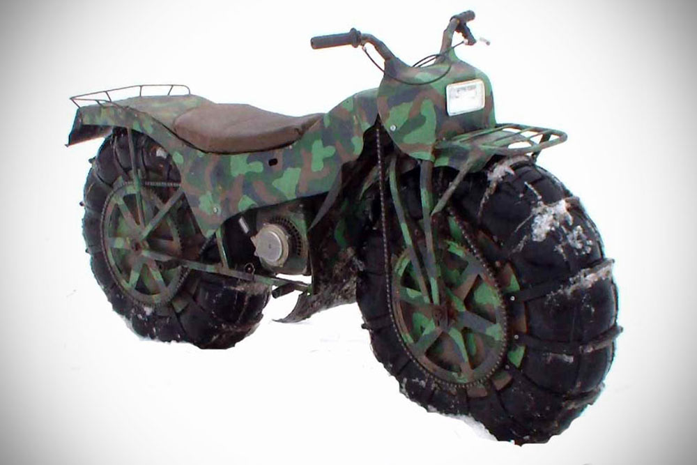 ATV Taurus 2 Questo originale veicolo di fabbricazione russa ha come caratteristiche peculiari la portabilità e l’indistruttibilità. Grazie alle due ruote motrici, sembra in grado di muoversi su qualunque terreno; si assembla in pochi minuti e, smontata, si può trasportare con due comode borse (a secco pesa intorno ai 50/60 kg). È spinta da un motore a 2 cilindri e monta due grandi ruote da 750 millimetri di diametro. I suoi inventori cercano investitori per produrla in serie.
