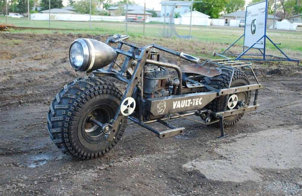 Fallout3 Motorcycle La moto adatta per affrontare le strade di un mondo post apocalittico. Alcuni studenti di una scuola superiore canadese si sono ispirati al noto videogame Fallout per realizzare questo progetto scolastico, aiutati dal loro insegnante di arti grafiche. Non ci sono dati precisi su dotazioni e prestazioni, ma a livello di stile questa motocicletta si difende con forza. Non è in produzione.