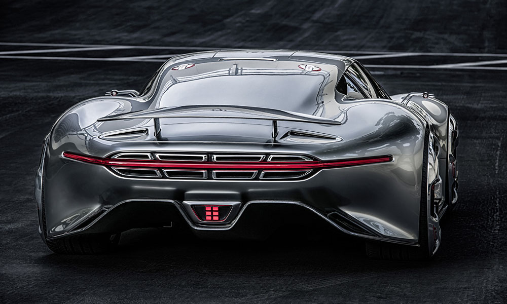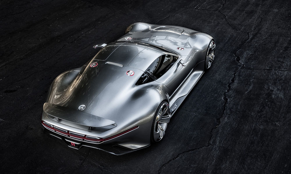 La nuova visione reinterpreta l’ampia griglia delle sportive Mercedes-Benz con Stella centrale, ricorda nella forma quella della 300 SL del 1952, ma come i jet ha display e comandi a bilico al centro della plancia e sul padiglione.