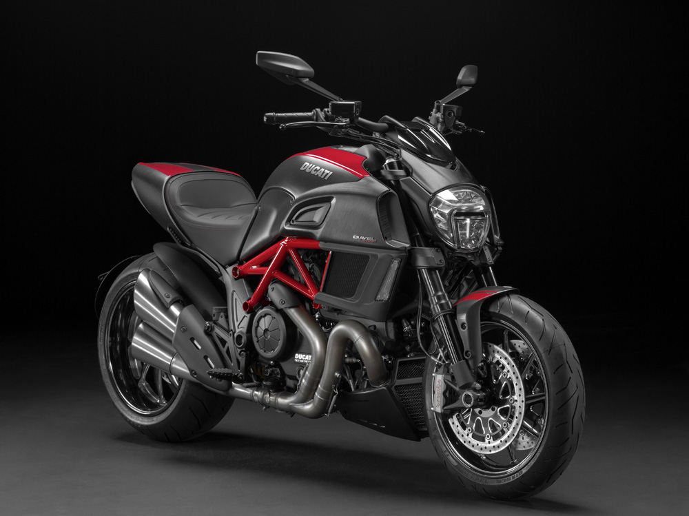 Il design non è stato ritoccato granché: da segnalare un nuovo impianto di scarico e alcuni elementi hi tech, come il faro a full led, mentre la sella più ampia permette di ospitare un passeggero. Rimane intatta la personalità unica della Diavel, che ne ha decretato il successo: l’approccio lifestyle si traduce in una moto sportiva ma confortevole, per affrontare tanto la città quanto i viaggi fuoriporta e i tornanti di montagna (i pneumatici da 240 mm sono stati progettati appositamente per la Diavel da Pirelli).