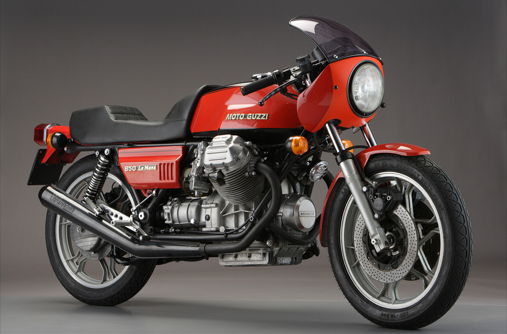 Le Mans – Un classico di stile e innovazione, prodotta per la prima volta nel 1976 e considerata fra le prime café racer. È una sportiva da 850 cc, derivata da un modello da gara, con frenata integrale (tecnologia introdotta da Guzzi nel mondo) e design ancora splendido, che entrò subito nel cuore dei rider e ebbe un gran successo. (Credits: Moto Guzzi)