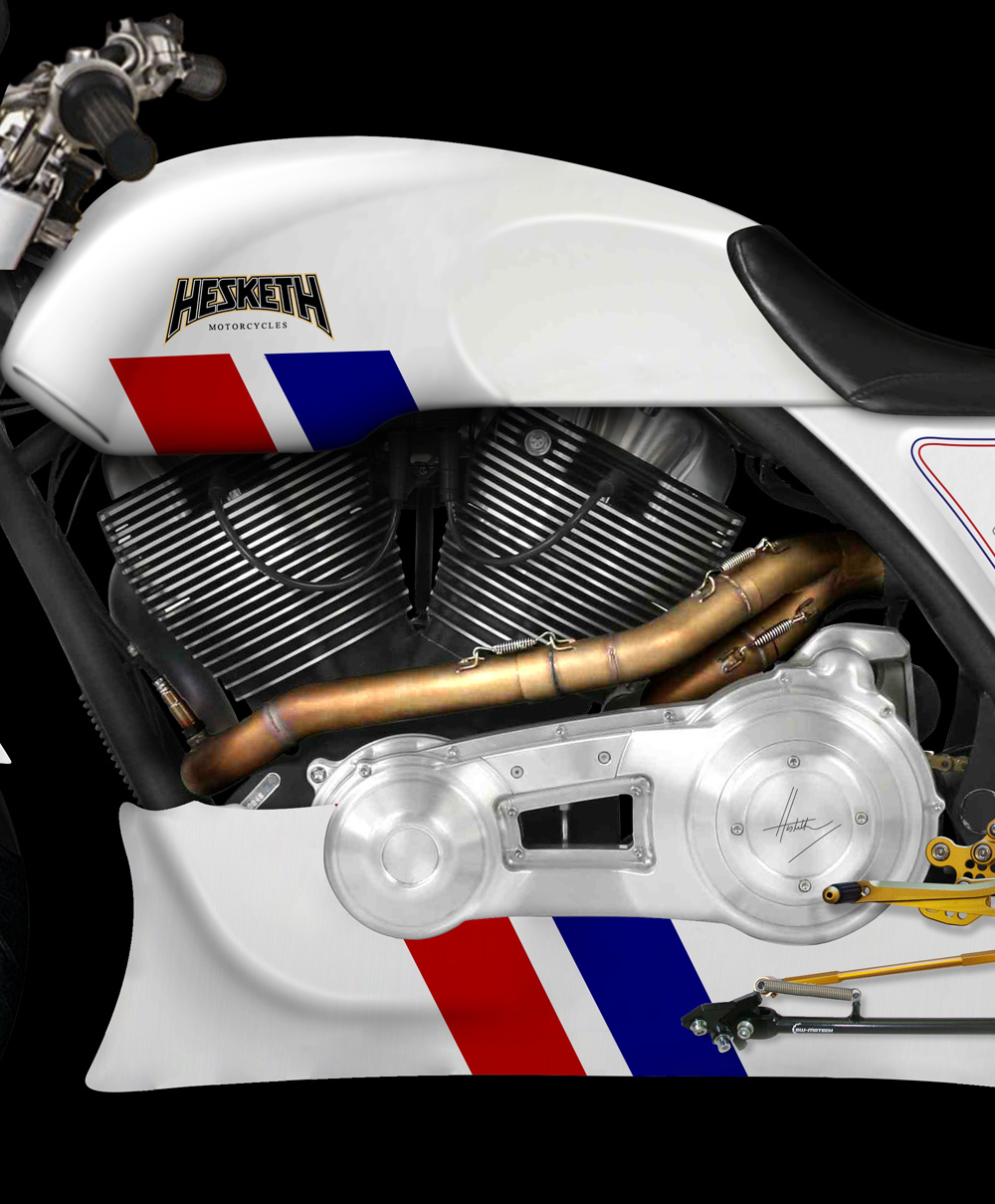 In realtà la Hesketh si occupava anche di moto: nel 1979 sviluppò la naked V1000 da 1000 cc, poi la Vampire. Si trattava di moto uniche ed esclusive, fatte a mano e dall’estetica glamour. Furono anche le prime inglesi con 4 valvole per cilindro. Non fu sufficiente: riscontrarono uno scarso successo commerciale che portò la Hesketh a chiudere la produzione. Ma nel 2010 l’ex pilota e businessman Paul Sleeman rileva il marchio da Mick Broom, che per trent’anni aveva prodotto Hesketh modificate, e nel 2012 viene costruita la nuova Kingswood V1000. Ora è il turno della 24, che segna il ritorno in grande stile.