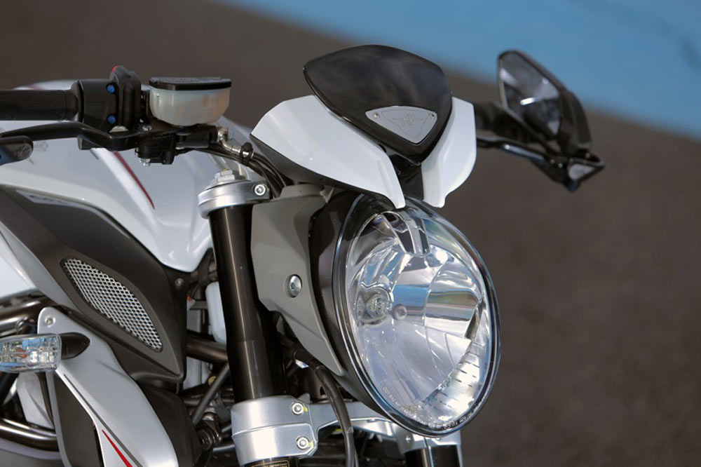 La MV Agusta Brutale 800 Dragster costa 13.490 euro ed è disponibile nei due colori Bianco e Grigio Avio.