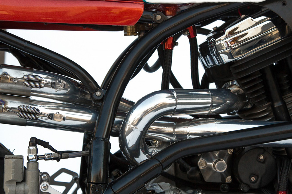 La Bully è stata realizzata a partire dalla Buell X1 Lightning, sulla quale sono state apportate modifiche fino a farla diventare una cosa a sé, raffinatissima e curata maniacalmente nei dettagli – telaio ridisegnato in sottili tubi d’acciaio, codone sospeso e tondeggiante, forcellone in acciaio, forcella a steli rovesciati alleggerita, cerchi a raggi, dischi a margherita, serbatoio in fibra di vetro e tutta la viteria anodizzata in ergal. Anche il motore ha subito modifiche, con aggiunta di cavalli.