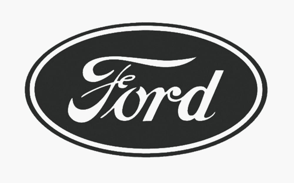 Ford – Henry Ford costruisce la prima auto in catena di montaggio e sceglie il carattere corsivo dentro l’ovale blu perché nel 1910 erano così le pubblicità.