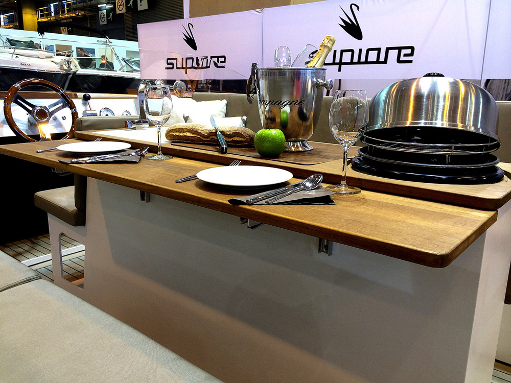 Doppie pareti per una tenuta a prova di incidente, sette seduta a poppa, tavolino modulare e con una dotazione di minifrigo e barbecue incorporati nella struttura, Supiore Uno unisce lusso e utilità, con dettagli minuziosamente rifiniti, a un prezzo di 45.200 euro (senza accessori).