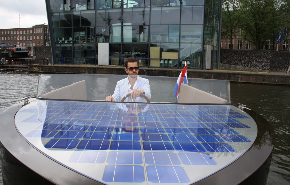 Lineare ed elegante, si muove alimentato da celle solari integrate sul ponte di prua, che hanno una capacità di carico di circa 400 watt. La velocità arriva a 10 nodi e viene controllata da un software apposito per poter navigare fino a 6 ore consecutive. L’ingegnoso sistema prevede il ricarico delle celle mentre si naviga; è possibile però anche ricaricare le batterie tramite la classica presa di corrente a muro, con risultati migliori in termini di velocità (5-20% in più in un’ora).