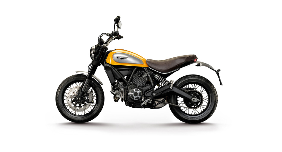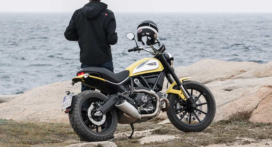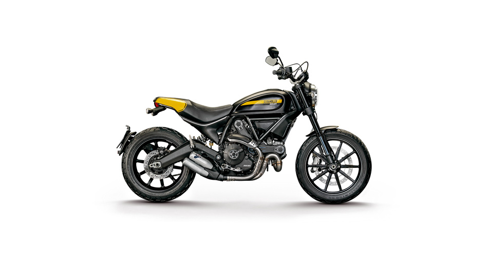 Forcellone in alluminio, serbatoio a goccia, ruote da 18 a razze, cromature (ma non troppo): l’impatto visivo è notevole e richiama proprio il modello del 1973 da 250 cc. Qui invece il motore è un Desmodue da 803cc (deriva dalla Monster 796) da 75 cavalli a 8.250 giri, cambio a sei rapporti e e frizione antisaltellamento.