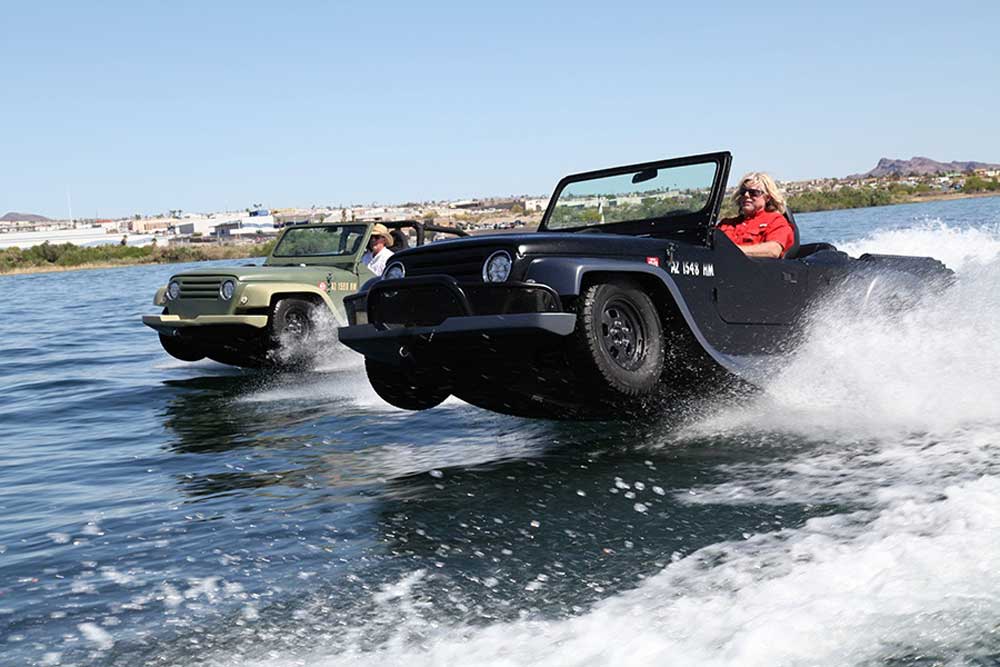 Sotto il cofano, il motore customizzato da 3,7 litri V6 sprigiona 250 cv: sul terreno si traducono in soli 130 km/h di velocità massima, ma sull’acqua consentono prestazioni più interessanti – circa 70 km/h, ossia ben 38 nodi.