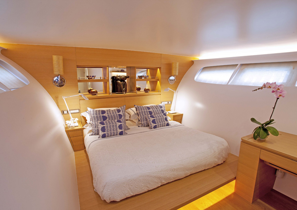 Per l’Adastra, lungo 42,5 metri e largo 16, il designer inglese John Shuttleworth ha reinventato quel concetto allo scopo di ottenere un trimarano leggero, stabile, adatto a lunghe traversate oceaniche e capace di ottime performance, ma al tempo stesso sufficientemente spazioso da ospitare tutti i comfort di uno yacht di classe.