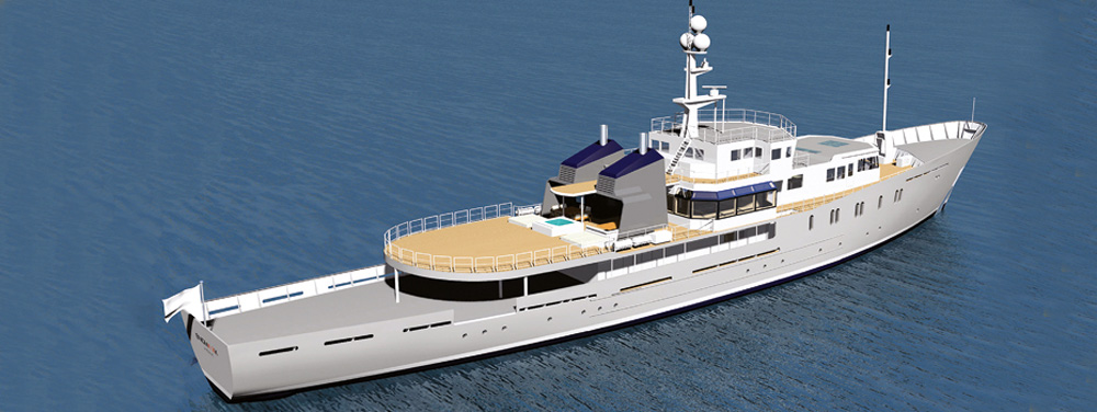Il panfilo da 80 metri e 80 milioni di dollari assemblato nei cantieri CRN del Gruppo Ferretti. Gli esterni sono a cura di Zuccon International Project, gli interni di Laura Sessa. (Credits: CRN)