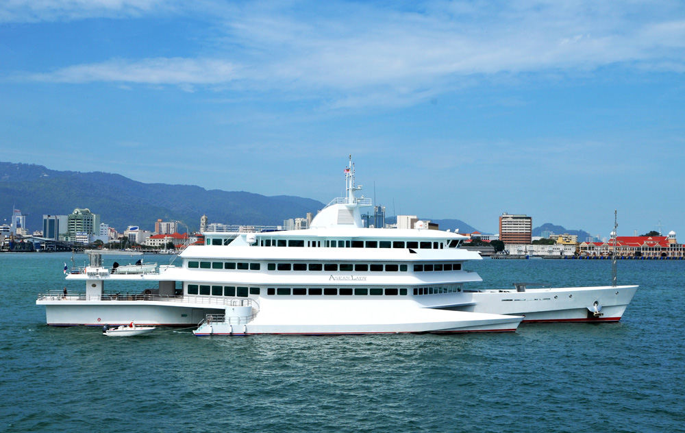 Asean Lady – Vista da un lato sembra una nave di lusso normalissima. Dall'altra parte, invece, ha un secondo scafo più piccolo, che sorregge insieme a quello principale una struttura di tre piani, quasi un condominio, con gli alloggi e gli spazi in comune per l'armatore e i suoi ospiti. Uno yacht asimmetrico, ma ingegnoso: questo tipo di struttura garantirebbe una stabilità eccellente. (Credits: sierra2u)