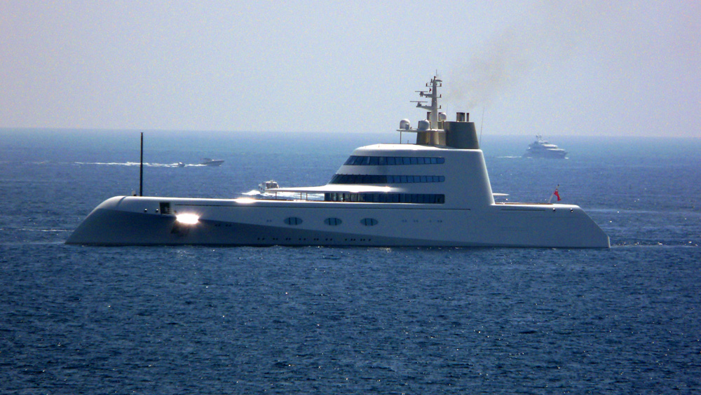 A – È stato definito da molti uno degli yacht più brutti del mondo: giudizio ingeneroso, per questo sorprendente colosso da 119 metri (il quarto più costoso del mondo, 300 milioni di dollari) creato da Philippe Starck e Martin Francis. Ma senza dubbio il suo design estremo, quasi da nave militare stealth, non può che polarizzare i giudizi. (Credits: twiga269 FEMEN)