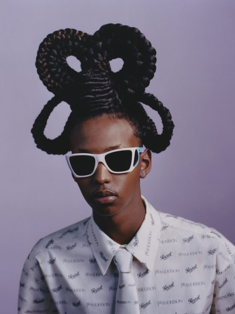 La ricca storia per immagini di Persol si sovrappone alle eccentriche rivisitazioni di Anderson sul significato dello stile, al classicismo grafico dello stilista Benjamin Bruno e alle acconciature scultoree dell’hairstylist giamaicano-americano Jawara. A catturare tutto questo, otto vivaci ritratti realizzati da Tyler Mitchell.