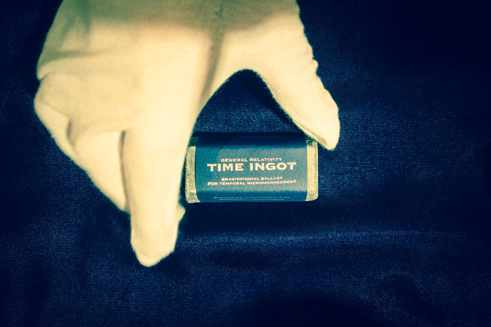 C’è anche il Time Ingot, all’eccezionale prezzo di lancio di 29,99 dollari. Un minuscolo lingotto di piombo che accresce la gravità ovunque sia piazzato, microdilatando il tempo nell’ordine di frazioni infinitesimali. Fermacarte irrinunciabile per liberarsi più velocemente delle noiosissime scartoffie, può essere anche piazzato sul comodino per allungare un sonno finalmente ristoratore. Attenzione: si avverte che la vaga sensazione di non aver capito niente è solo un trucco del marketing della Spacetime Industries. Un pretesto per vendere lingotti a tutti quelli che, prima di oggi, non avevano mai avuto il tempo per approfondire niente.