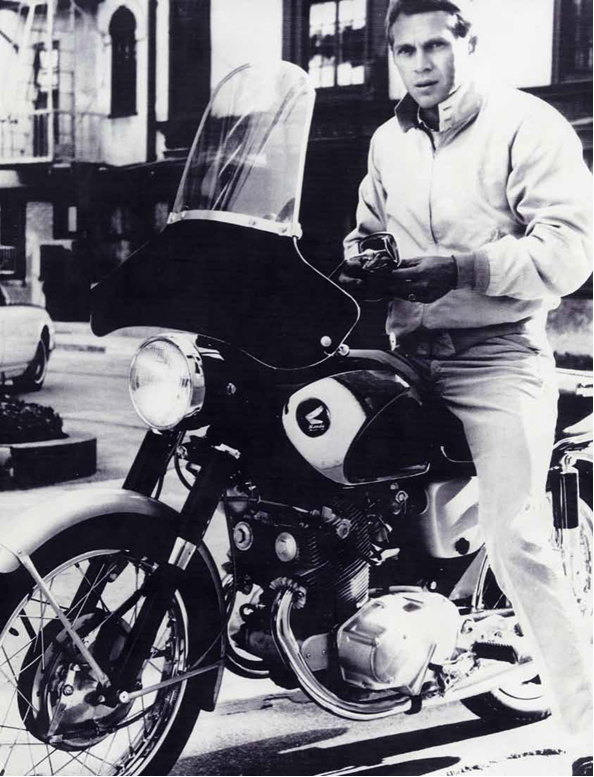 1964: Steve McQueen rappresenta il team degli Stati Uniti agli International Six Days Trials, gara motociclistica che quell’anno si svolgeva in Germania dell’Est. La squadra si fermò a Londra per acquistare a tutti i piloti giacche Barbour International, ritenute le più robuste e adatte a sopportare le intemperie allora in commercio