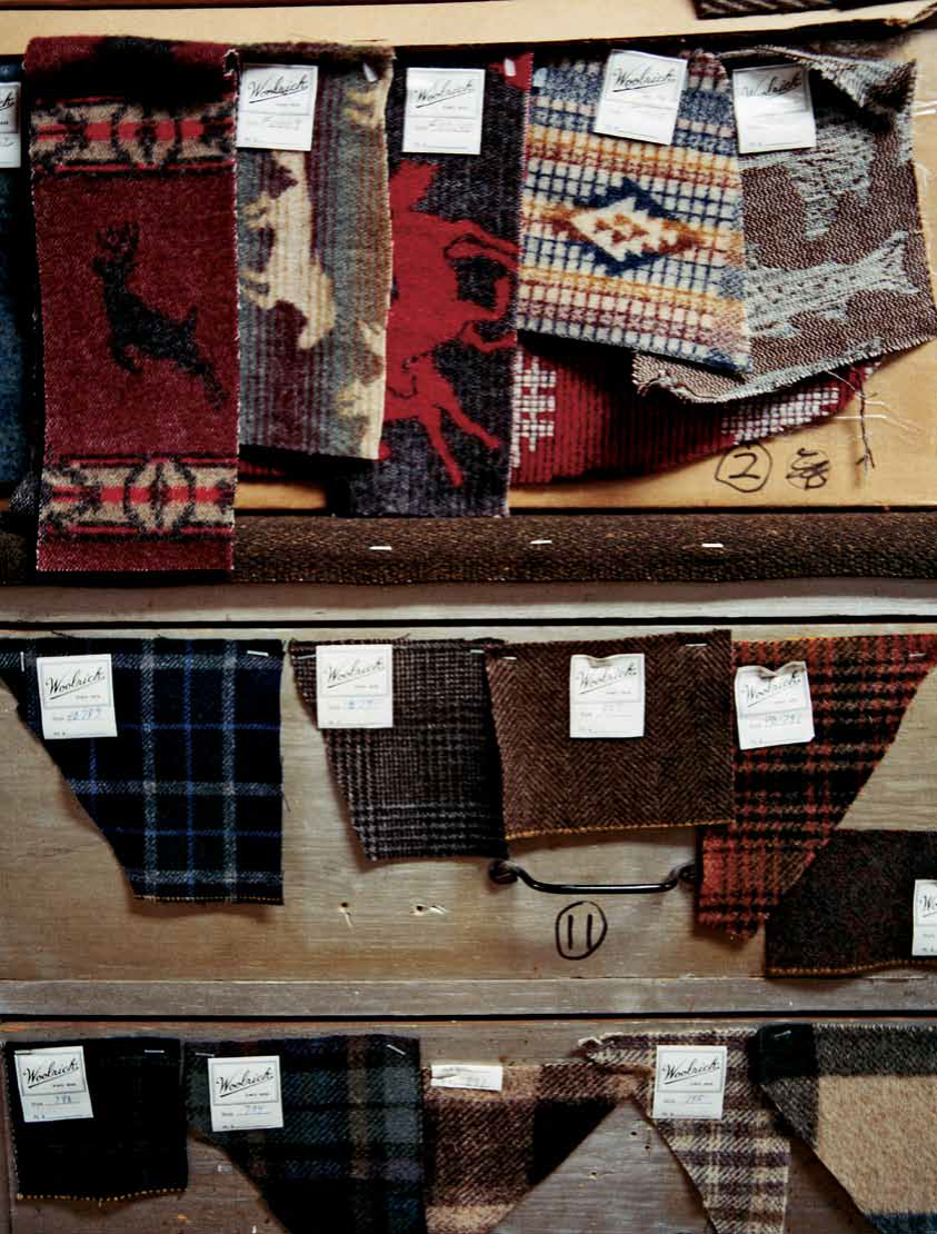 Foto di archivio con pezzi di stoffa di lana Woolrich