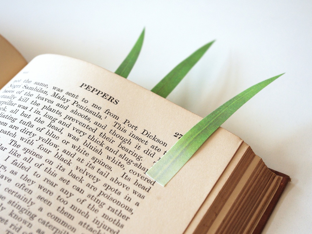 Green Marker, by Yuruliku, sono divertenti segnalibro di carta a forma di foglia che paiono spuntare direttamente dai volumi, premiati con un Good Design Award nel 2010.