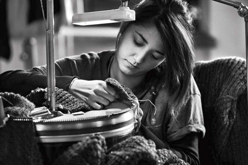 L’imprenditore punta sul sartoriale e sui giovani che forma nella Scuola di Solomeo, piccolo borgo umbro. Qui le prime immagini tra i segreti del rammaglio e la lavorazone dei filati