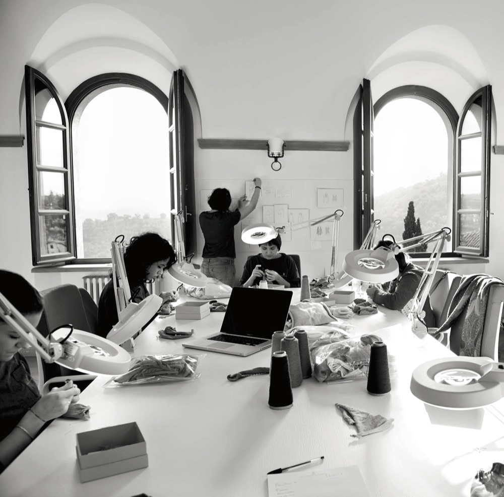 Nella Scuola dei mestieri di Solomeo si apprendono discipline che abbracciano il mondo della moda e non solo. I corsi durano 9 mesi e i ragazzi ammessi (fino a un’età di 27 anni) imparano le basi della lavorazione del cashmere come i segreti del rammaglio, ovvero la riparazione dei tessuti a maglia e il rammendo. Il corso, che prevede 3 mesi di aula e laboratorio con frequenza obbligatoria e 6 mesi di tirocinio aziendale, è gratuito e agli allievi viene riconosciuta una borsa di studio mensile di 700 euro lordi per tutta la durata del percorso formativo.
