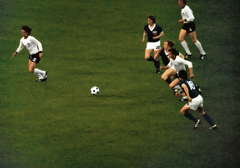 22 June 1974 – Football World Cup 1974 – East Germany v West Germany – Bernd Flohe of West Germany runs through the East German midfield.