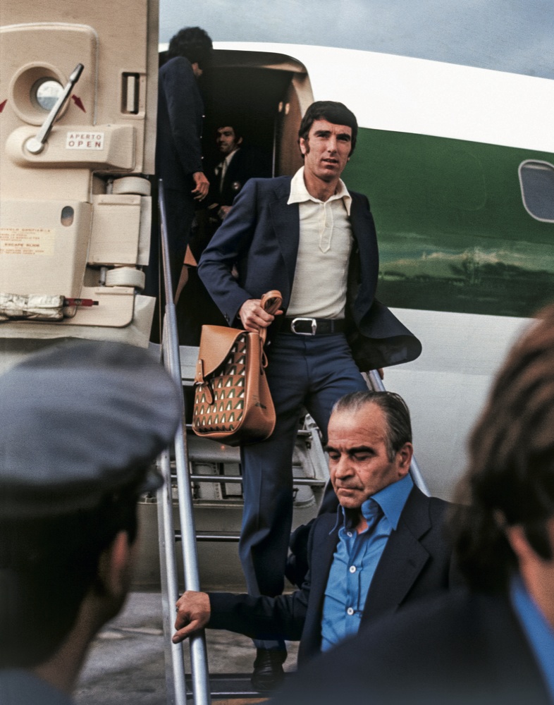 Dino Zoff con la squadra dell’Italia al rientro dopo l’eliminazione dalla Coppa del Mondo nel 1974. (Mondadori/Getty Images)
