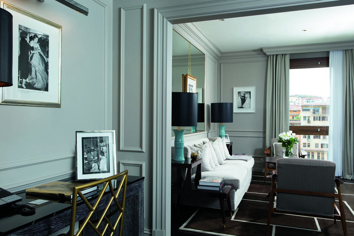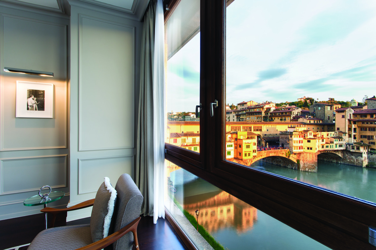 34 le suite, tutte diverse per arredi (studiati dall’architetto fiorentino Michele Bonan) e dimensione (da 40 a 120 mq) e pensate come vere e proprie case da vivere, eleganti, raffinate ma dotate anche di kitchenette a scomparsa, e device di ultima generazione (tra cui mega schermo TV, iPad con docking station, Wifi, Bluetooth per la diffusione della musica, librerie musicali e Dvd). Per molte terrazza e vista mozzafiato su Ponte Vecchio e sull’Arno.