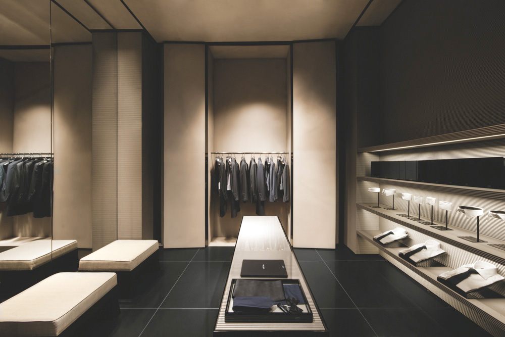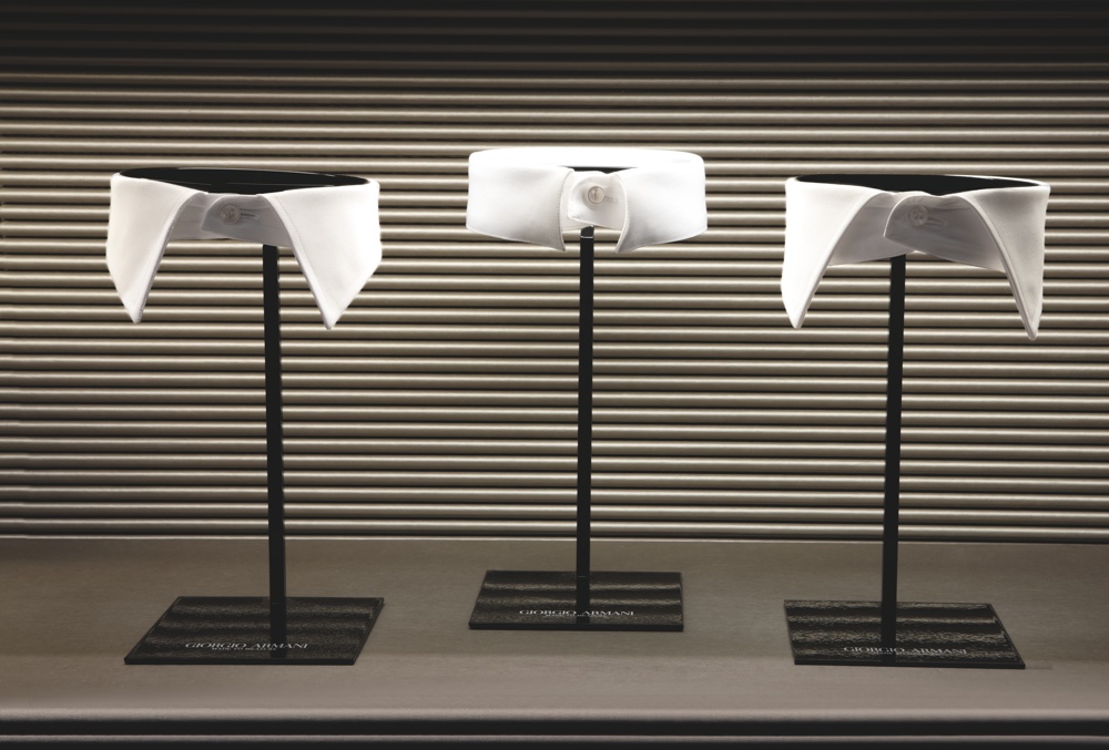 Il quarto pilastro – Nel 2006, pur apprezzando i vantaggi della democratizzazione, Armani intuì una nuova esigenza di unicità, il desiderio di tornare a distinguersi. Decise così di offrire, parallelamente al prêt-à-porter, un servizio Su Misura: inizialmente disponibile in un numero selezionato di negozi in tutto il mondo, oggi in quasi tutte le boutique Giorgio Armani, il cliente ha l’occasione di scegliere il tessuto, la fodera, i bottoni, calibrare la silhouette e la forma dei revers, assecondando il proprio gusto. Ogni dettaglio può essere discusso e modificato e il risultato sarà un capo esclusivo, reso unico anche dall’etichetta personalizzata. Prese le misure, poi, da quel momento il negozio dispone del modello su carta, specifico per quel cliente, che così può ordinare i completi successivi senza dover passare in boutique (e ricevendo a casa o in ufficio, volendo, campioni di tessuto).