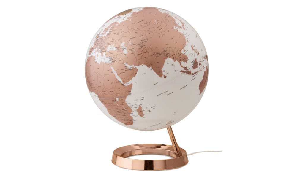 Light&Colour: la linea ideata da Atmosphere che coniuga design elegante con la precisione e la sintesi delle informazioni geografiche. Interamente prodotti in Italia, i mappamondi firmati Atmosphere, grazie alle lampadine a risparmio energetico, diffondono luce intensa e all’occasione si trasformano in lampade da interni. La nuova gamma comprende le varianti colore Copper, Charcoal e Gold.