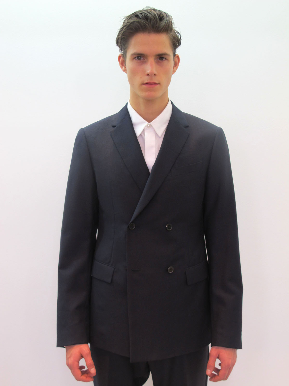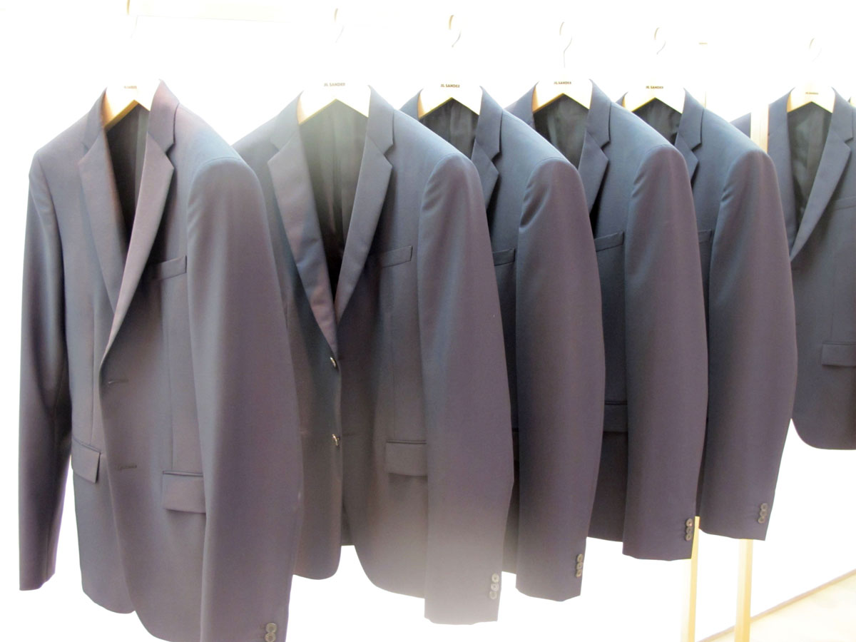 Unico il drop previsto in collezione, numero otto, ma in tre diverse varianti: con fit ‘slim’ abbinato ad un pantalone fondo 19 cm; ‘new regular’ segnato in vita ma con maggior apertura sul petto ed abbinato ad un pantalone fondo 20 cm ed infine ‘new classic’ dalla vestibilità più piena, il pantalone a fondo 20 cm e la particolarità del doppio spacco sulla giacca. E così in casa Jil Sander la giacca a tre bottoni torna di moda anche al di fuori delle passerelle. Un’attitudine individuale, segno di uno stile mai ostentato, sempre riconoscibile.
