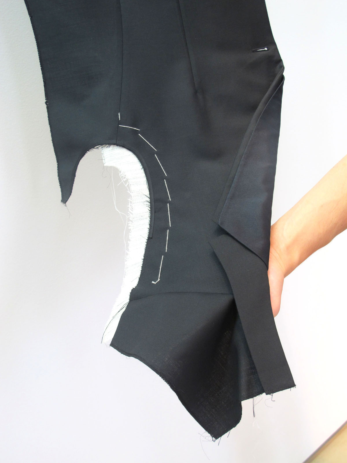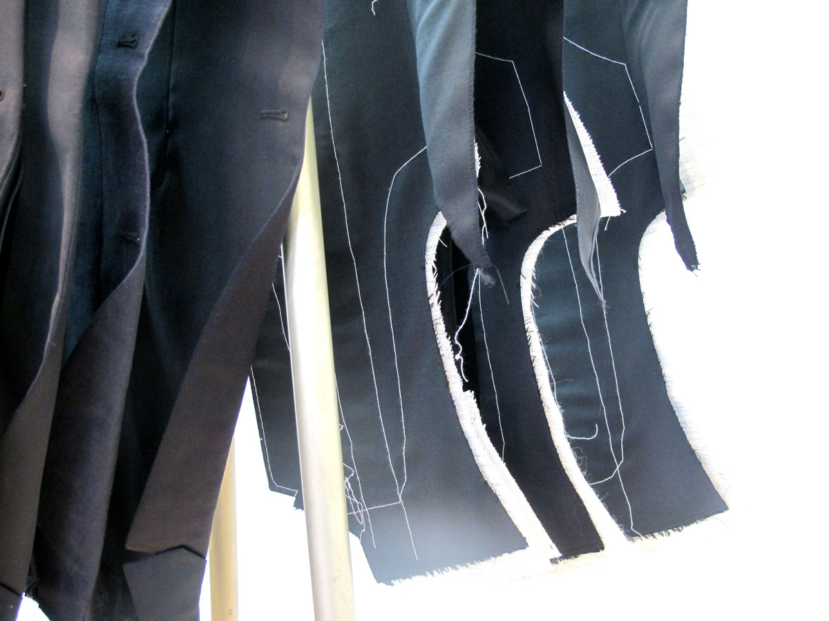 ‘JIL SANDER vanta una solida eredità fondata sulla sartorialità, su tagli moderni e su materiali di primissima qualità. Continuerò a spingere il brand ai limiti dell’avanguardia nel campo dello stile e della ricerca dei tessuti. Sarà concentrato, eppure sobriamente audace.’ Introduce così la sua nuova Jil Sander stessa, volta a rendere più accessibile e moderno il tradizionale mondo del tailoring. Sei le ore di lavorazione per produrre una giacca nata quasi come un progetto architettonico, che ruota attorno al concetto di tridimensionalità, con un focus specifico sui movimenti e sulla possibilità di azione. Una vera e propria forma di ingegneria applicata alla moda per un capo che prende vita una volta indossato. Sei anche le fasi della lavorazione, che parte dall’applicazione del bindello (o nastrino) per impostare a macchina il giromanica, alla base della struttura e della creazione di una giacca. Segue l’applicazione della tela sul tessuto, con una ricerca specifica fatta per peso e tipo di tessuto e l’ammollo per 48 ore in acqua per eliminare ogni tipo di ritiro. Questa applicazione prosegue lungo tutta la lunghezza della giacca nel progetto fully intelato in modo da sostenere la giacca per tutta la sua struttura. Si passa poi all’integrazione della fodera lasciando un soffietto sui bordi che garantisce elasticità e miglior vestibilità. 11 travetti vengono fissati a mano, così come i punti nel sottocollo, di un filo volutamente più spesso. Ultimo, importantissimo passaggio, una stiratura manuale delle tasche in modo da conferire maggior rotondità e tridimensionalità al capo.