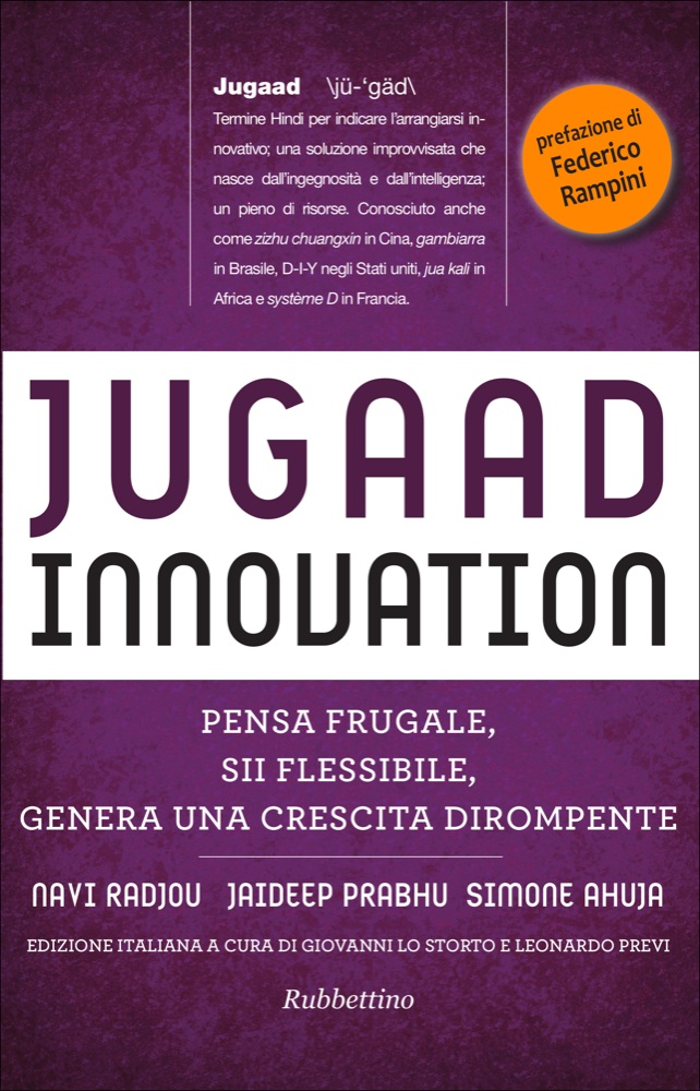 Caratteristica tradizionalmente riconosciuta agli italiani, la capacità di aguzzare l’ingegno nel momento del bisogno oggi è stata approfondita da tre studiosi indiani nel libro Jugaad Innovation (edizioni Rubettino), a cura di Giovanni Lo Storto, direttore generale della LUISS, e Leonardo Previ, dal 1996 alla guida di Trivioquadrivio, società di cultura, ricerca e impresa, con prefazione di Gabriele Rampini.