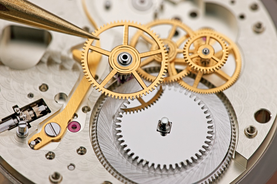 A MANO A MANO – È proprio qui che comincia il ruolo fondamentale (e insostituibile) dell’uomo: ogni pezzo viene pulito, controllato perché le misure rientrino nei parametri stabiliti, levigato e sottoposto a una prima operazione di lucidatura e decorazione. Soltanto a quel punto inizia il montaggio: su una base metallica (quasi nobile perché in argentone, detto anche alpacca, anziché nel consueto ottone rodiato), vengono disposti i vari componenti che, nel caso dei modelli più sofisticati, superano di molto le 600-700 unità. Quindi, si completa il movimento che dà vita a una piccola macchina pulsante, con il bilanciere, il suo “cuore”. È quindi la mano dei maestri orologiai della A. Lange & Söhne l’utensile più prezioso; specie quando si tratta di montare la catena del conoide (una vite senza fine già nota ai tempi di Leonardo da Vinci), che in alcuni dei modelli più complessi, equilibra la forza sviluppata dalla molla di carica. La catena è simile a quella delle biciclette, solo che immensamente più sottile: pur essendo lunga 24 centimetri, infatti, è composta di ben 633 microelementi; tra i quali le minute maglie, che misurano solo 0,6 millimetri di lunghezza e 0,3 di spessore.