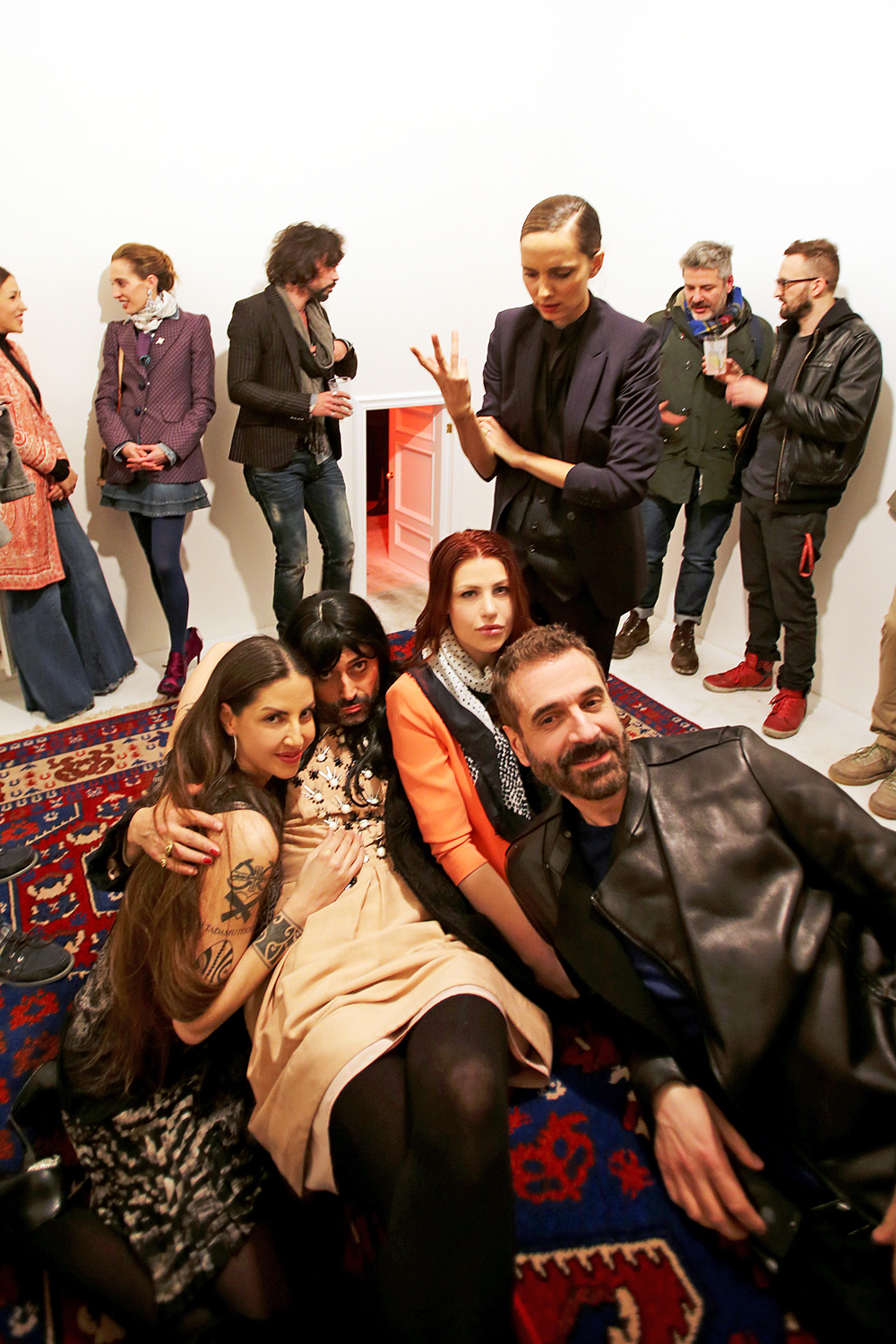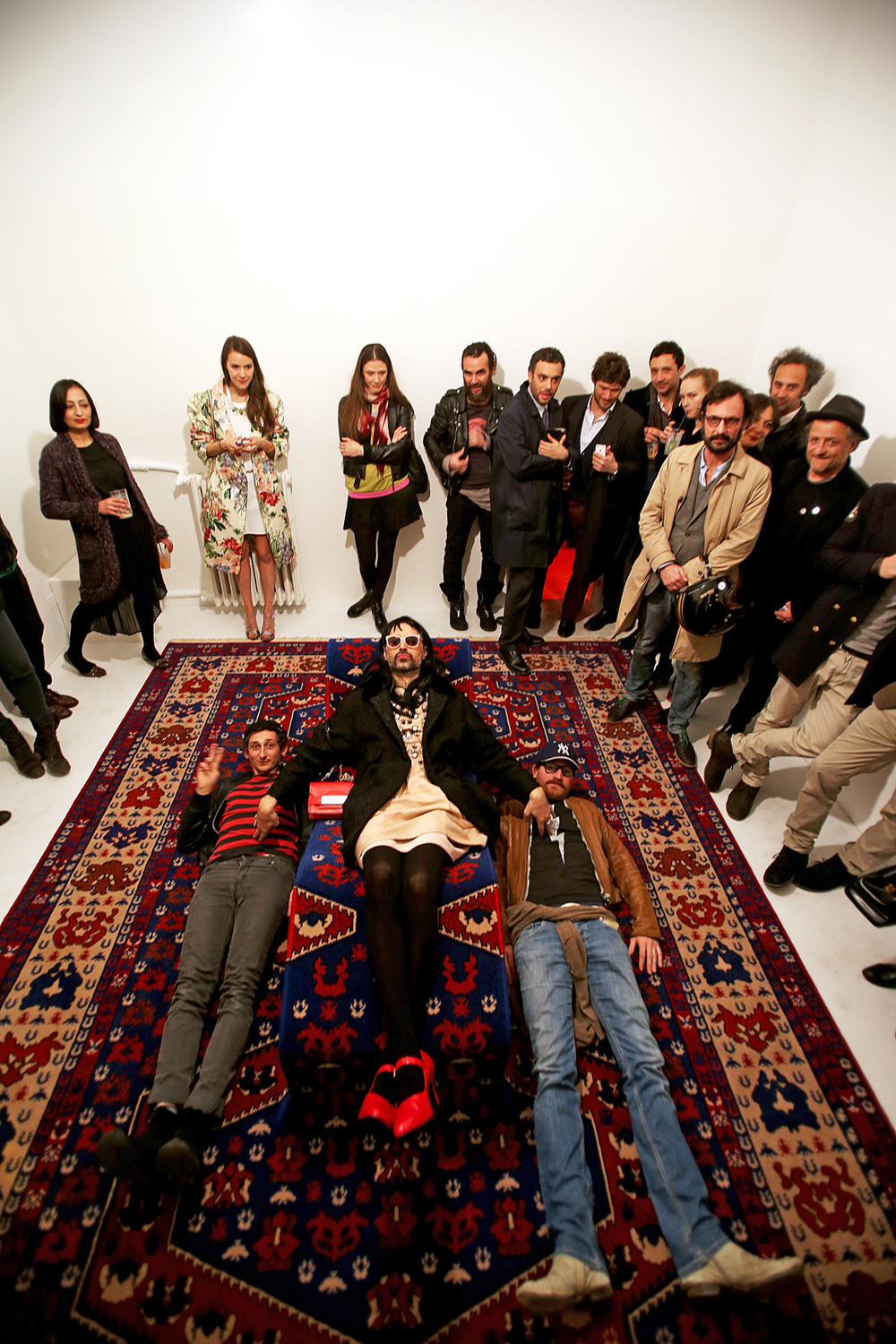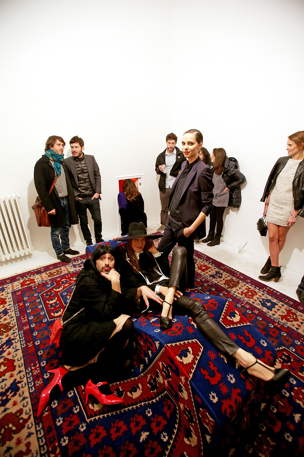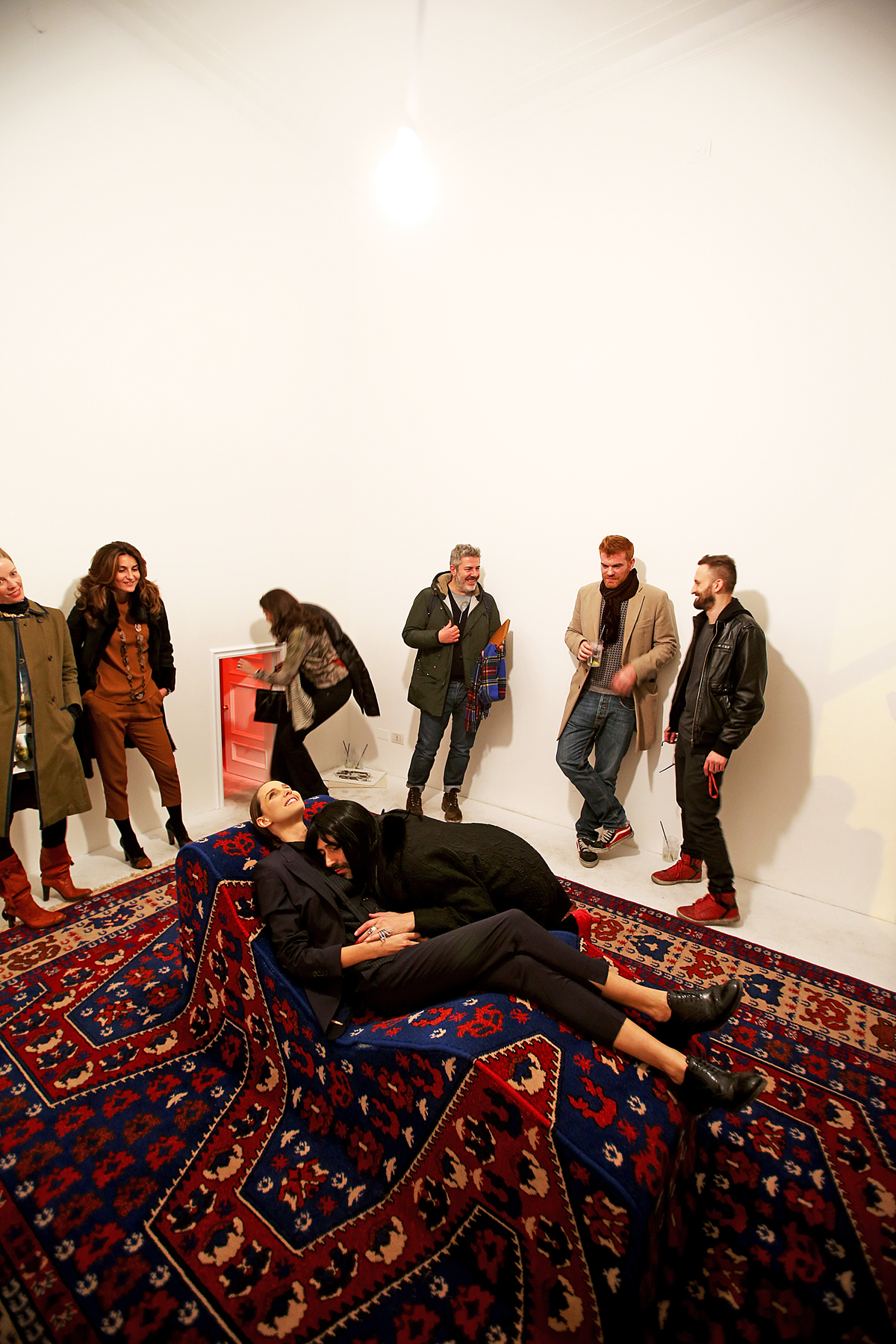 Alla galleria Le Dictateur di Pierpaolo Ferrari, Federico Pepe e Maurizio Cattelan, nel mezzo della sala, Fabio Novembre vestiva abiti da donna e si adagiava sulla sua ultima creazione, Lapsus. Un tappeto persiano ricopriva il lettino originale, quello di Freud, stratificando i simboli. Il tappeto è un’interpretazione dell’universo: separa un dentro da un fuori, un sopra da un sotto. Ha dimensioni (dunque ordine), ha bordure e cornici come veri e propri baluardi magici, disegnati in questo caso con le macchie di Rorschach. Nella mitologia greca il destino è tessuto attraverso la trama femminile e l’ordito maschile: noi siamo il veicolo mortale di una sostanza virtualmente immortale… ma questo non è un Lapsus. (A.V.)